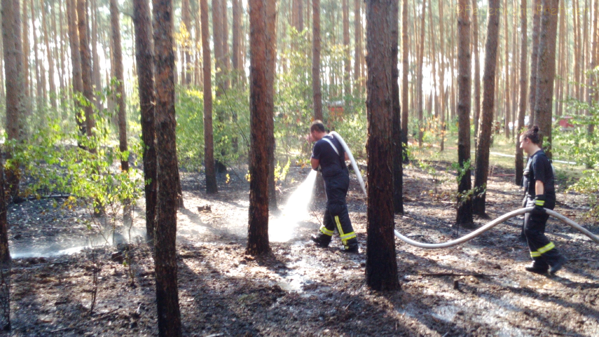 Die Waldbrandgefahr in Ostelbien ist hoch. Die Wehren Plötzky, Pretzien, Gommern, Dannigkow übten gemeinsam für den Ernstfall.
