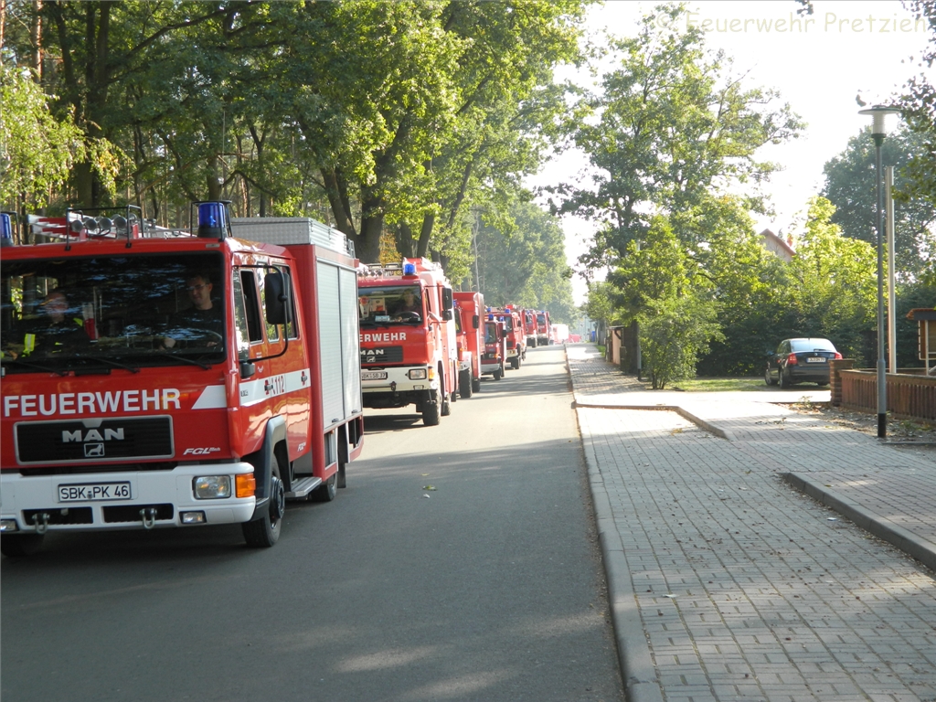 Die Waldbrandgefahr in Ostelbien ist hoch. Die Wehren Plötzky, Pretzien, Gommern, Dannigkow übten gemeinsam für den Ernstfall.