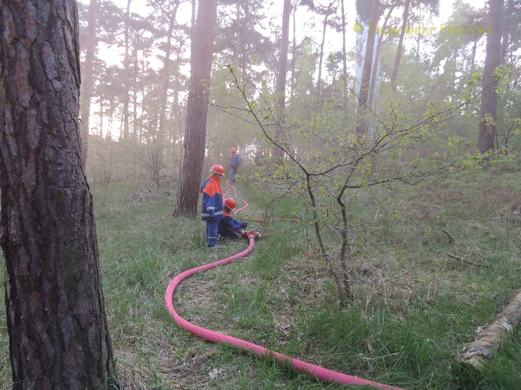 Die Waldbrandgefahr in Ostelbien ist hoch. Die Wehren Plötzky, Pretzien, Gommern, Dannigkow übten gemeinsam für den Ernstfall.